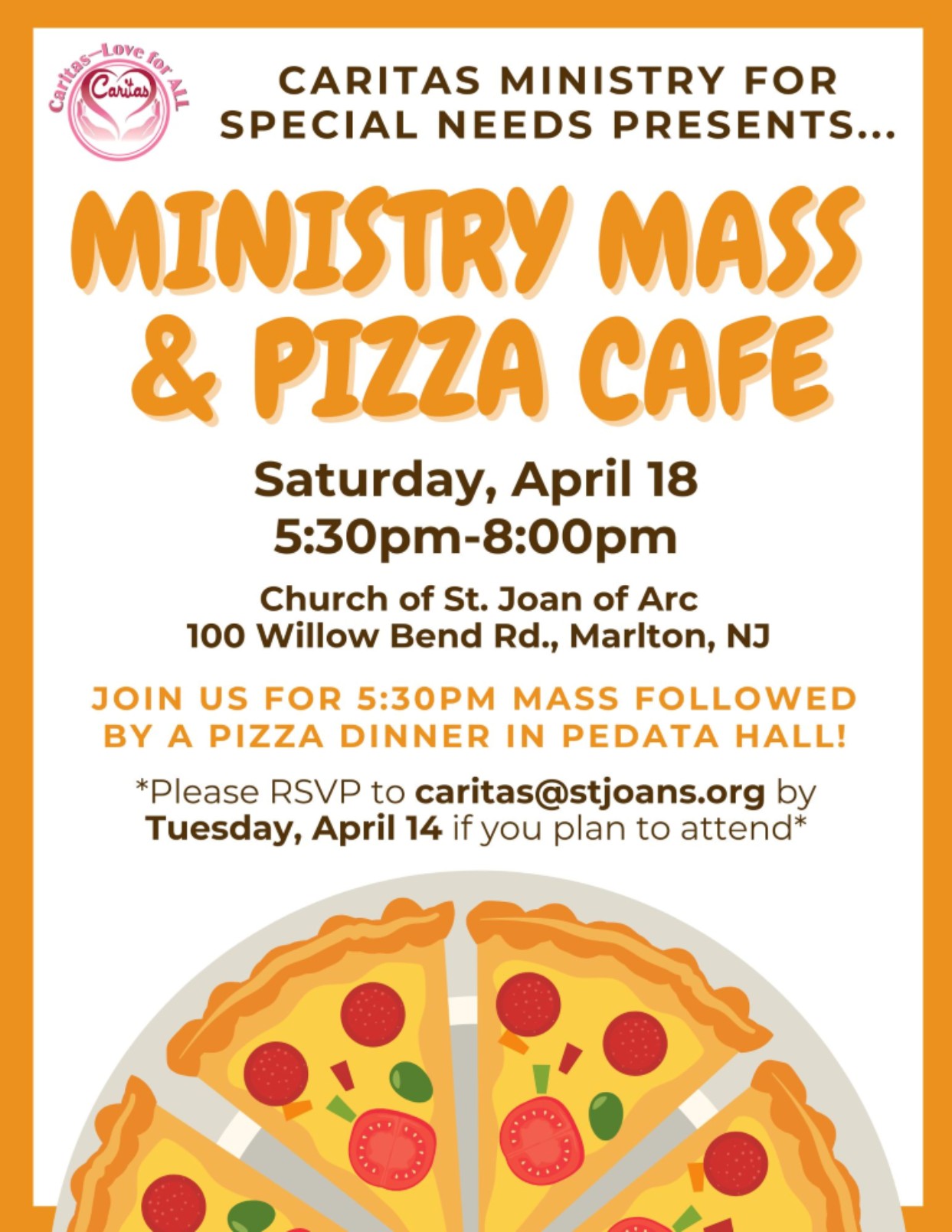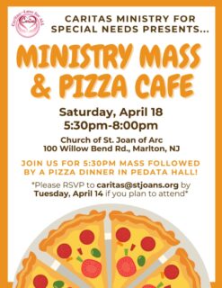 The Caritas Ministry seeks ways to serve our St. Joan of Arc family with special needs so we may worship together; and have the blessing of the presence and participation in parish life of ALL.